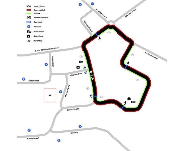 Het circuit is gelegen op bedrijventerrein De Haar te Tubbergen. Start en finish is ter hoogte van Jos Engbers motoren aan de Galvanistraat. Vervolgens loopt het circuit via de Newtonstraat linksom richting Reutummerweg en via de rotonde over de L. van Bönninghausenstraat weer terug. Zowel bij de Praxis als bij Autototaal zijn 2 horecapleinen met diverse stands voor de inwendige mens. Een deel van het circuit (zie onderstaande tekening) is afgesloten voor het publiek, maar middels de oversteekplaatsen zijn de diverse publieke punten bereikbaar.
